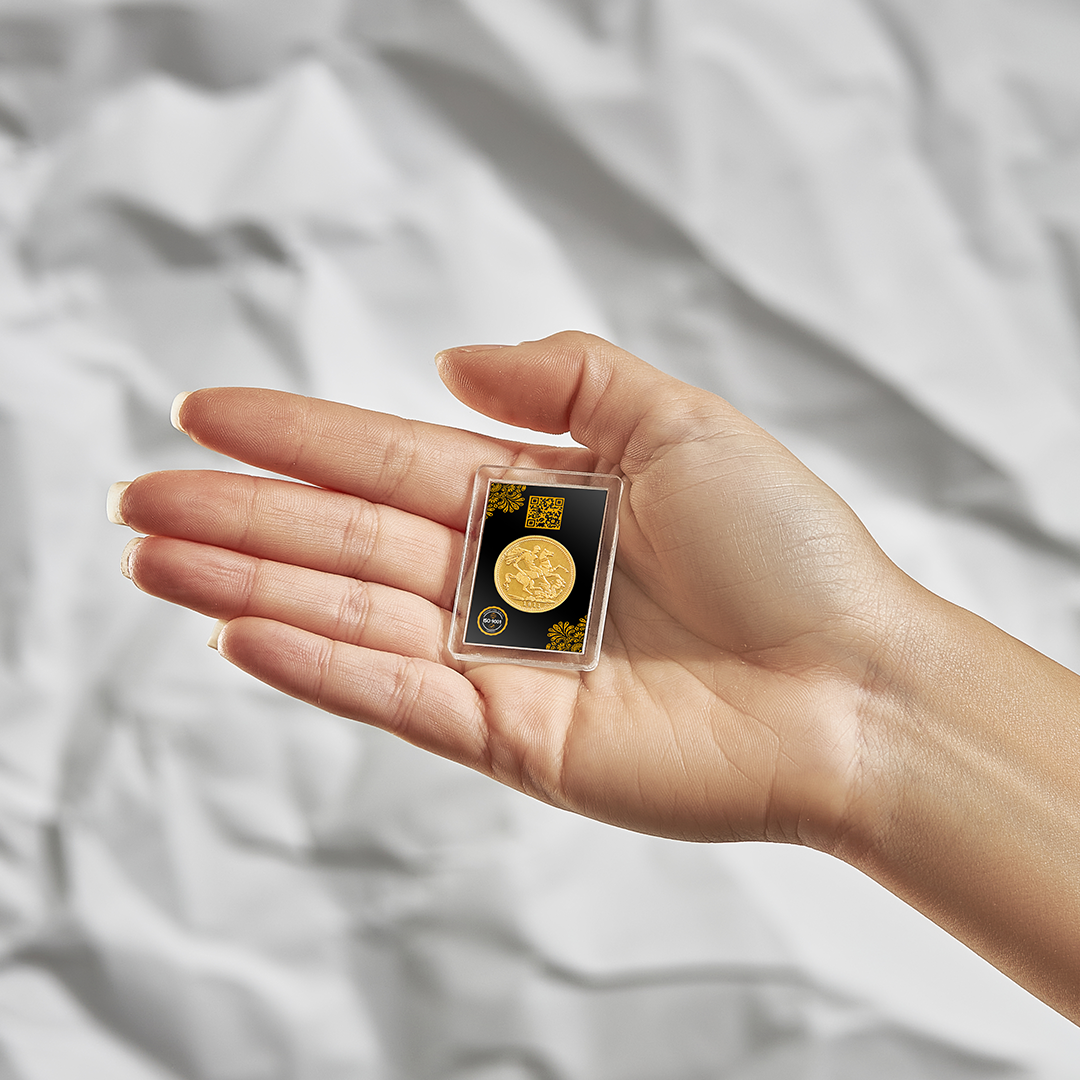 This “Quarter Gold Pound” is made of 2 grams of pure, 21-karat yellow gold. It features a detailed portrait of Fifth King George, this coin embodies the opulence of an era gone by—it's a piece of history.