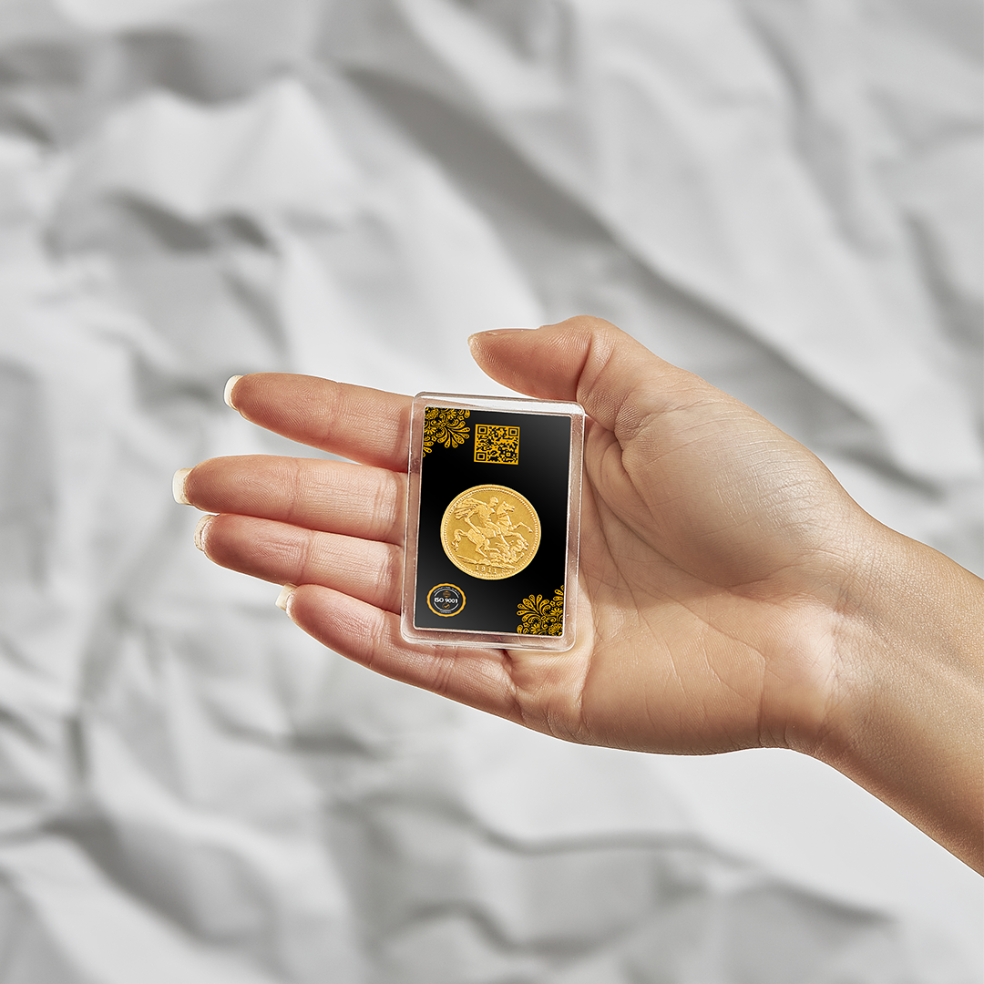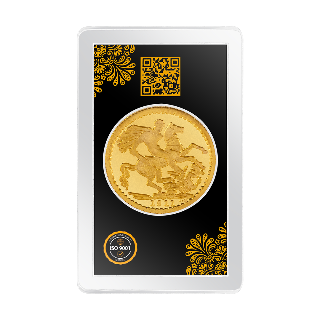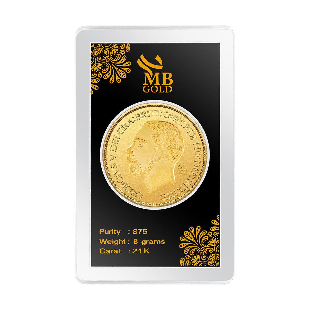 This “One Gold Pound” is made of 8 grams of pure, 21-karat yellow gold. It features a detailed portrait of Fifth King George, this coin embodies the opulence of an era gone by—it's a piece of history.